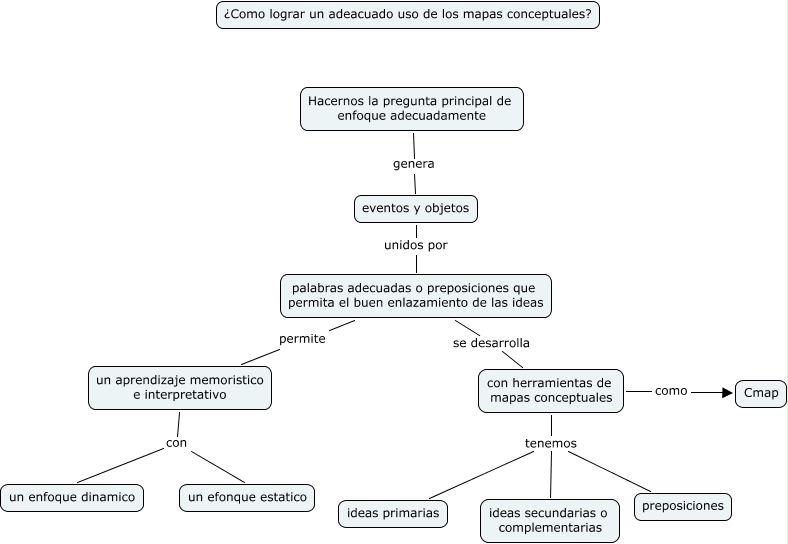 Este Cmap, tiene información relacionada con: mapa coneceptual, palabras adecuadas o preposiciones que permita el buen enlazamiento de las ideas permite un aprendizaje memoristico e interpretativo, eventos y objetos unidos por palabras adecuadas o preposiciones que permita el buen enlazamiento de las ideas, con herramientas de mapas conceptuales como Cmap, un aprendizaje memoristico e interpretativo con un efonque estatico, un aprendizaje memoristico e interpretativo con un enfoque dinamico, con herramientas de mapas conceptuales tenemos preposiciones, Hacernos la pregunta principal de enfoque adecuadamente genera eventos y objetos, con herramientas de mapas conceptuales tenemos ideas secundarias o complementarias, con herramientas de mapas conceptuales tenemos ideas primarias, palabras adecuadas o preposiciones que permita el buen enlazamiento de las ideas se desarrolla con herramientas de mapas conceptuales