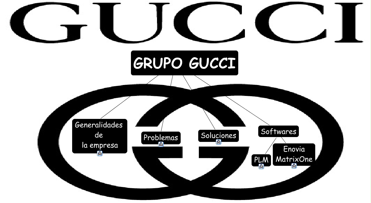 Este Cmap, tiene información relacionada con: presentacion1, GRUPO GUCCI Soluciones, GRUPO GUCCI Problemas, Softwares ???? Enovia MatrixOne, Softwares PLM, GRUPO GUCCI Generalidades de la empresa, GRUPO GUCCI Softwares