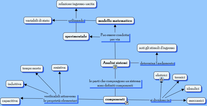 Questa Cmap, creata con IHMC CmapTools, contiene informazioni relative a: Analisi di un sistema 1, Analisi sistemi le parti che compongono un sistema sono definiti componenti componenti, modello matematico urilizzando relazione ingresso-uscita, sperimentale urilizzando relazione ingresso-uscita, componenti verificabili attraverso le proprietà elementari resistiva, componenti si dividono in: termici, componenti si dividono in: meccanici, sperimentale urilizzando variabili di stato, componenti verificabili attraverso le proprietà elementari capacitiva, componenti verificabili attraverso le proprietà elementari tempo morto, componenti verificabili attraverso le proprietà elementari induttiva, componenti si dividono in: idraulici, modello matematico urilizzando variabili di stato, componenti si dividono in: elettrici, Analisi sistemi determina l'andamento noti gli stimoli d'ingresso, Analisi sistemi Puo essere condotta per via modello matematico, Analisi sistemi Puo essere condotta per via sperimentale