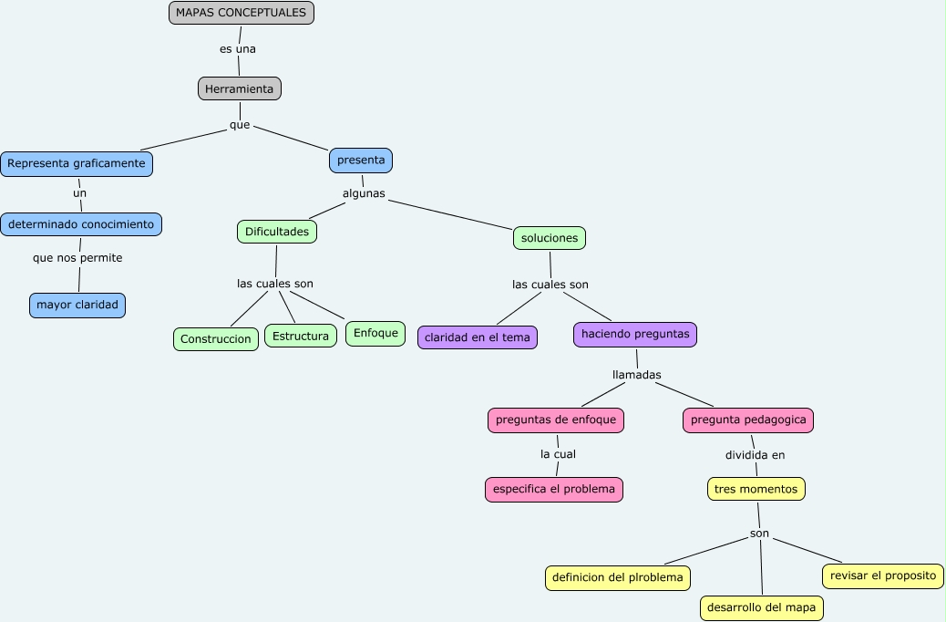Este Cmap, tiene información relacionada con: mapa conceptual, claridad en el tema las cuales son haciendo preguntas, Construccion las cuales son Dificultades, tres momentos son revisar el proposito, preguntas de enfoque la cual especifica el problema, Construccion las cuales son Estructura, Representa graficamente un determinado conocimiento, tres momentos son desarrollo del mapa, soluciones algunas Dificultades, haciendo preguntas llamadas preguntas de enfoque, Construccion las cuales son Enfoque, presenta que Representa graficamente, haciendo preguntas llamadas pregunta pedagogica, pregunta pedagogica dividida en tres momentos, MAPAS CONCEPTUALES es una Herramienta, tres momentos son definicion del plroblema, Herramienta que Representa graficamente, claridad en el tema las cuales son soluciones, soluciones algunas presenta, determinado conocimiento que nos permite mayor claridad