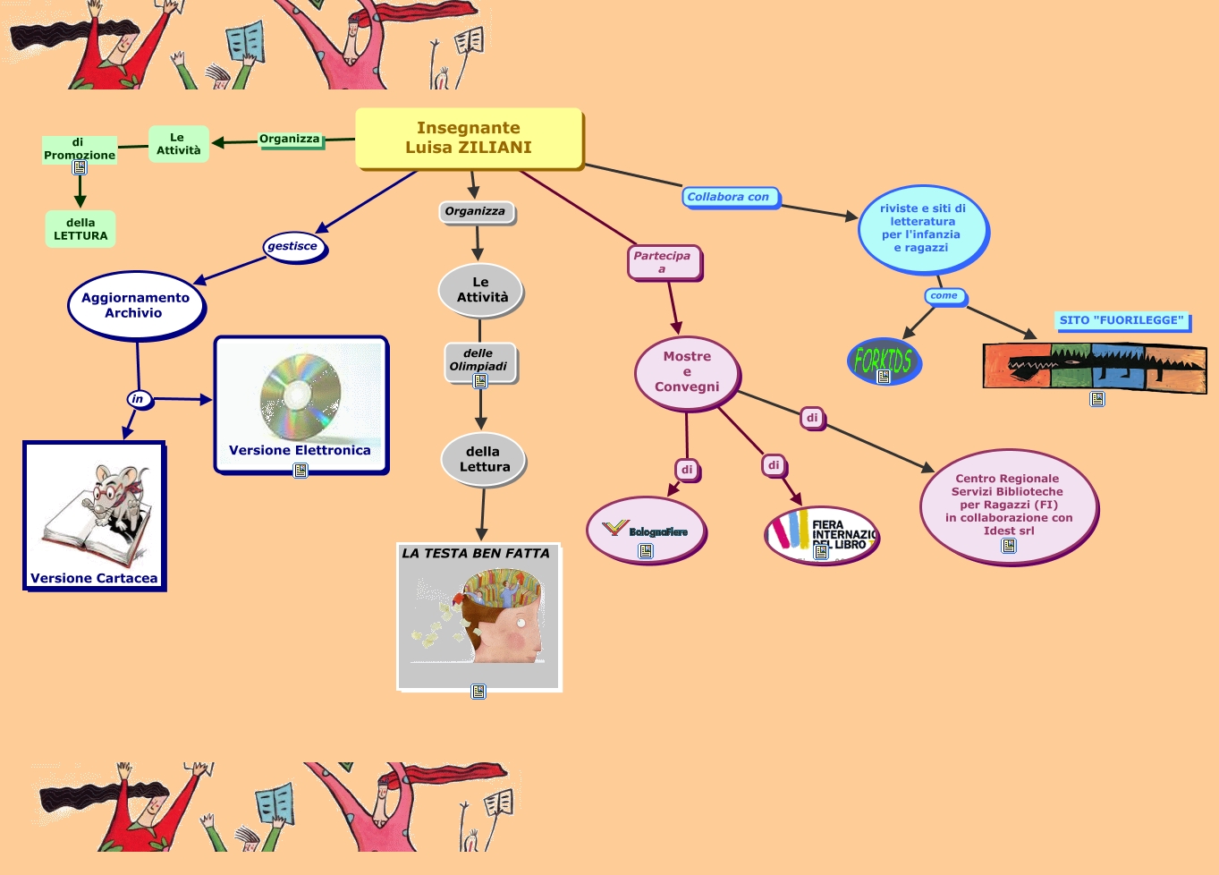 Questa Cmap, creata con IHMC CmapTools, contiene informazioni relative a: FS_Ziliani 1, Insegnante Luisa ZILIANI gestisce Aggiornamento Archivio, riviste e siti di letteratura per l'infanzia e ragazzi come, Mostre e Convegni di ????, Insegnante Luisa ZILIANI Organizza Le Attività, Aggiornamento Archivio in Versione Cartacea, Le Attività delle Olimpiadi della Lettura, Insegnante Luisa ZILIANI Partecipa a Mostre e Convegni, riviste e siti di letteratura per l'infanzia e ragazzi come, Mostre e Convegni di Centro Regionale Servizi Biblioteche per Ragazzi (FI) in collaborazione con Idest srl, Mostre e Convegni di, Le Attività di Promozione della LETTURA, Insegnante Luisa ZILIANI Organizza Le Attività, Insegnante Luisa ZILIANI Collabora con riviste e siti di letteratura per l'infanzia e ragazzi, Aggiornamento Archivio in Versione Elettronica