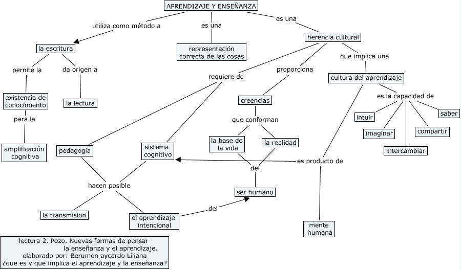 Este Cmap, tiene información relacionada con: lectura 2, sistema cognitivo hacen posible el aprendizaje intencional, cultura del aprendizaje es la capacidad de intuir, la realidad del ser humano, la escritura da origen a la lectura, creencias que conforman la realidad, herencia cultural requiere de pedagogía, cultura del aprendizaje es la capacidad de intercambiar, herencia cultural requiere de sistema cognitivo, la escritura pernite la existencia de conocimiento, la base de la vida del ser humano, creencias que conforman la base de la vida, cultura del aprendizaje es la capacidad de compartir, pedagogía hacen posible el aprendizaje intencional, cultura del aprendizaje es producto de sistema cognitivo, APRENDIZAJE Y ENSEÑANZA es una representación correcta de las cosas, herencia cultural que implica una cultura del aprendizaje, APRENDIZAJE Y ENSEÑANZA es una herencia cultural, cultura del aprendizaje es producto de mente humana, pedagogía hacen posible la transmision, el aprendizaje intencional del ser humano
