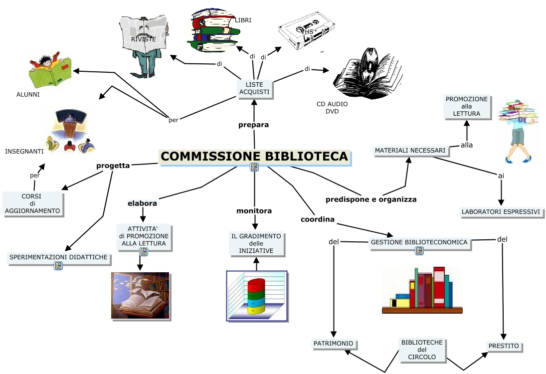 Questa Cmap, creata con IHMC CmapTools, contiene informazioni relative a: BIBLIOTECA, COMMISSIONE BIBLIOTECA monitora IL GRADIMENTO delle INIZIATIVE, ???? ???? IL GRADIMENTO delle INIZIATIVE, MATERIALI NECESSARI ai LABORATORI ESPRESSIVI, CORSI di AGGIORNAMENTO per, LISTE ACQUISTI di CD audio, COMMISSIONE BIBLIOTECA prepara LISTE ACQUISTI, COMMISSIONE BIBLIOTECA progetta SPERIMENTAZIONI DIDATTICHE, COMMISSIONE BIBLIOTECA coordina GESTIONE BIBLIOTECONOMICA, COMMISSIONE BIBLIOTECA predispone e organizza MATERIALI NECESSARI, COMMISSIONE BIBLIOTECA elabora ATTIVITA' di PROMOZIONE ALLA LETTURA, BIBLIOTECHE del CIRCOLO ???? PATRIMONIO, ATTIVITA' di PROMOZIONE ALLA LETTURA ???? ????, MATERIALI NECESSARI alla PROMOZIONE alla LETTURA, LISTE ACQUISTI di, LISTE ACQUISTI di RIVISTE, GESTIONE BIBLIOTECONOMICA del PATRIMONIO, GESTIONE BIBLIOTECONOMICA del PRESTITO, COMMISSIONE BIBLIOTECA progetta CORSI di AGGIORNAMENTO, LISTE ACQUISTI di VHS, LISTE ACQUISTI per