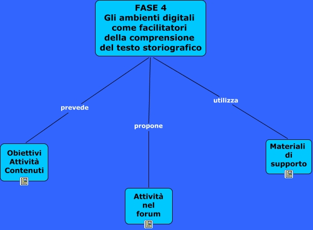 Questa Cmap, creata con IHMC CmapTools, contiene informazioni relative a: Fase4, FASE 4 Gli ambienti digitali come facilitatori della comprensione del testo storiografico propone Attività nel forum, FASE 4 Gli ambienti digitali come facilitatori della comprensione del testo storiografico prevede Obiettivi Attività Contenuti, FASE 4 Gli ambienti digitali come facilitatori della comprensione del testo storiografico utilizza Materiali di supporto