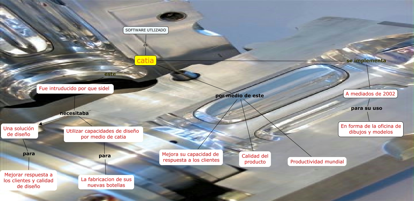 Este Cmap, tiene información relacionada con: Sin Título, catia por medio de este Calidad del producto, Fue intruducido por que sidel necesitaba Una solución de diseño, catia por medio de este Mejora su capacidad de respuesta a los clientes, Utilizar capacidades de diseño por medio de catia para La fabricacion de sus nuevas botellas, A mediados de 2002 para su uso En forma de la oficina de dibujos y modelos, catia por medio de este Productividad mundial, Una solución de diseño para Mejorar respuesta a los clientes y calidad de diseño, SOFTWARE UTLIZADO es catia, Fue intruducido por que sidel necesitaba Utilizar capacidades de diseño por medio de catia, catia este Fue intruducido por que sidel, catia se implementa A mediados de 2002