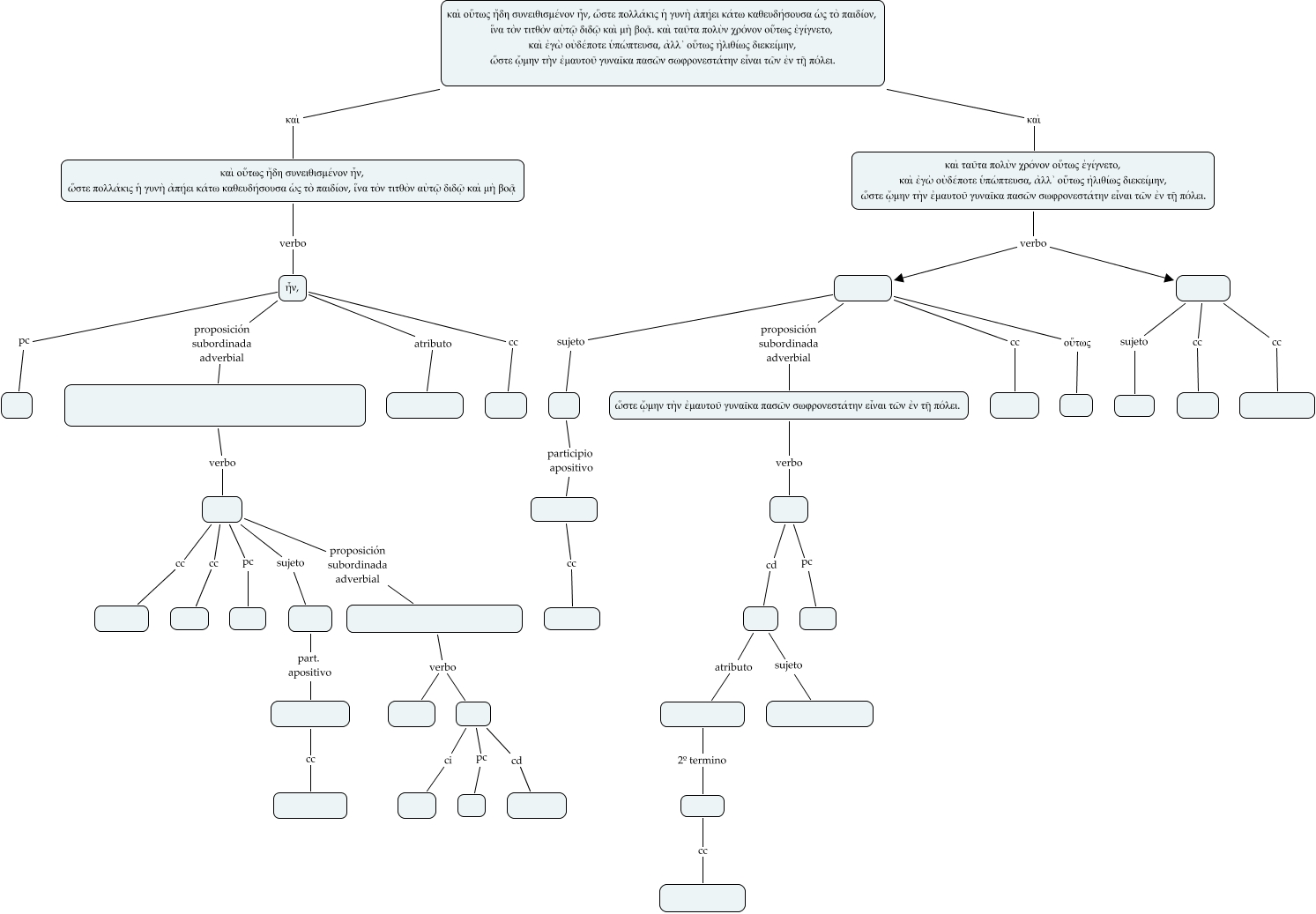 Este Cmap, tiene información relacionada con: Lísias I, 10_090031122008 (alu), ἀπῄει proposición subordinada adverbial ἵνα τὸν τιτθὸν αὐτῷ διδῷ καὶ μὴ βοᾷ, ἀπῄει sujeto ἡ γυνὴ, ἡ γυνὴ part. apositivo καθευδήσουσα, διδῷ ci αὐτῷ, ἐγίγνετο, cc πολὺν χρόνον, ἦν, proposición subordinada adverbial ὥστε πολλάκις ἡ γυνὴ ἀπῄει κάτω καθευδήσουσα ὡς τὸ παιδίον, ἵνα τὸν τιτθὸν αὐτῷ διδῷ καὶ μὴ βοᾷ, ἵνα τὸν τιτθὸν αὐτῷ διδῷ καὶ μὴ βοᾷ verbo μὴ βοᾷ, καὶ οὕτως ἤδη συνειθισμένον ἦν, ὥστε πολλάκις ἡ γυνὴ ἀπῄει κάτω καθευδήσουσα ὡς τὸ παιδίον, ἵνα τὸν τιτθὸν αὐτῷ διδῷ καὶ μὴ βοᾷ. καὶ ταῦτα πολὺν χρόνον οὕτως ἐγίγνετο, καὶ ἐγὼ οὐδέποτε ὑπώπτευσα, ἀλλ᾿ οὕτως ἠλιθίως διεκείμην, ὥστε ᾤμην τὴν ἐμαυτοῦ γυναῖκα πασῶν σωφρονεστάτην εἶναι τῶν ἐν τῇ πόλει. καὶ καὶ οὕτως ἤδη συνειθισμένον ἦν, ὥστε πολλάκις ἡ γυνὴ ἀπῄει κάτω καθευδήσουσα ὡς τὸ παιδίον, ἵνα τὸν τιτθὸν αὐτῷ διδῷ καὶ μὴ βοᾷ, ἐγίγνετο, cc οὕτως, καὶ ταῦτα πολὺν χρόνον οὕτως ἐγίγνετο, καὶ ἐγὼ οὐδέποτε ὑπώπτευσα, ἀλλ᾿ οὕτως ἠλιθίως διεκείμην, ὥστε ᾤμην τὴν ἐμαυτοῦ γυναῖκα πασῶν σωφρονεστάτην εἶναι τῶν ἐν τῇ πόλει. verbo διεκείμην,, διεκείμην, proposición subordinada adverbial ὥστε ᾤμην τὴν ἐμαυτοῦ γυναῖκα πασῶν σωφρονεστάτην εἶναι τῶν ἐν τῇ πόλει., διεκείμην, sujeto ἐγὼ, ἀπῄει pc ὥστε, ἦν, pc ἤδη, καὶ οὕτως ἤδη συνειθισμένον ἦν, ὥστε πολλάκις ἡ γυνὴ ἀπῄει κάτω καθευδήσουσα ὡς τὸ παιδίον, ἵνα τὸν τιτθὸν αὐτῷ διδῷ καὶ μὴ βοᾷ verbo ἦν,, ὑπώπτευσα, cc οὐδέποτε, καθευδήσουσα cc ὡς τὸ παιδίον, ἵνα τὸν τιτθὸν αὐτῷ διδῷ καὶ μὴ βοᾷ verbo διδῷ, ἐγίγνετο, sujeto ταῦτα, ᾤμην cd εἶναι