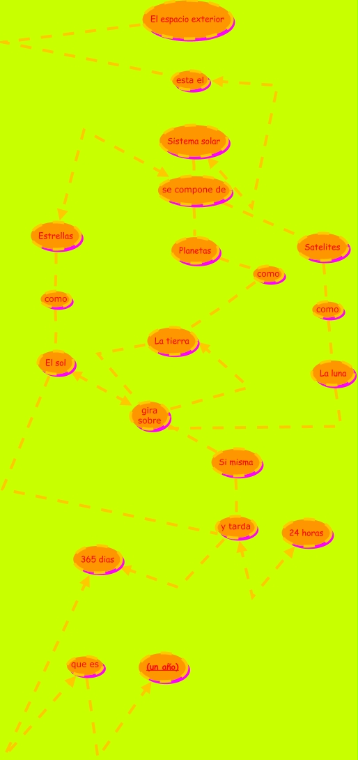 Este Cmap, tiene información relacionada con: CONO-T08-El espacio exterior, Si misma y tarda 365 dias, La luna gira sobre Si misma, Sistema solar se compone de Planetas, Satelites como La luna, Sistema solar se compone de Estrellas, La tierra gira sobre Si misma, La luna gira sobre El sol, La luna gira sobre La tierra, Sistema solar se compone de Satelites, El sol y tarda 365 dias, El sol y tarda 24 horas, Estrellas como El sol, Planetas como La tierra, Si misma y tarda 24 horas, El espacio exterior esta el Sistema solar, 365 dias que es (un año), La tierra gira sobre El sol
