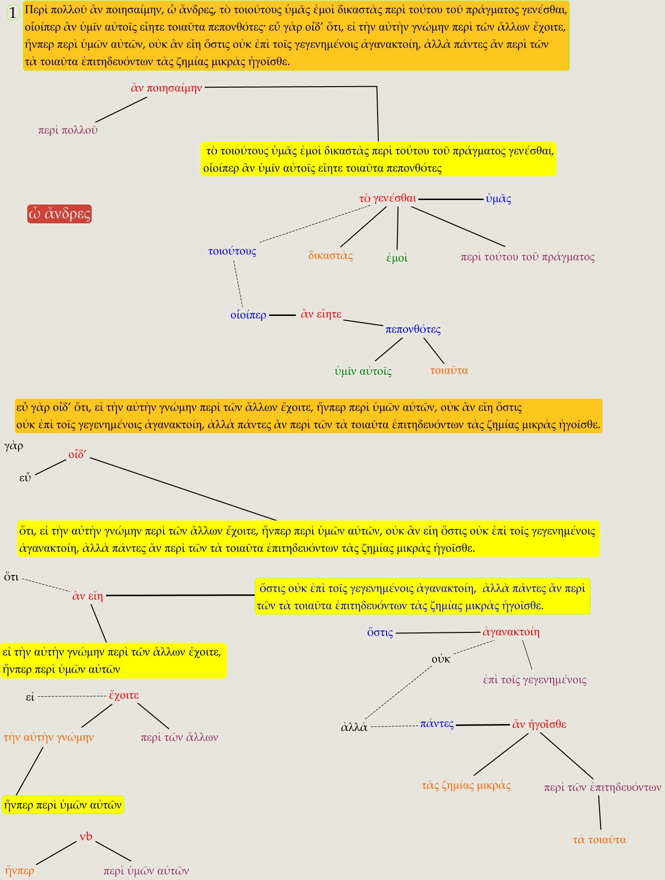 Este Cmap, tiene información relacionada con: frag 1 imprimir, ὅτι, εἰ τὴν αὐτὴν γνώμην περὶ τῶν ἄλλων ἔχοιτε, ἥνπερ περὶ ὑμῶν αὐτῶν, οὐκ ἂν εἴη ὅστις οὐκ ἐπὶ τοῖς γεγενημένοις ἀγανακτοίη, ἀλλὰ πάντες ἄν περὶ τῶν τὰ τοιαῦτα ἐπιτηδευόντων τὰς ζημίας μικρὰς ἡγοῖσθε. ???? οἶδ’, εἰ τὴν αὐτὴν γνώμην περὶ τῶν ἄλλων ἔχοιτε, ἥνπερ περὶ ὑμῶν αὐτῶν ???? ἂν εἴη, ὑμᾶς ???? γενέσθαι, ἄν ἡγοῖσθε ???? πάντες, περὶ τῶν ἐπιτηδευόντων ???? ἄν ἡγοῖσθε, ὅτι ???? ἂν εἴη, οἷοίπερ ???? ἂν εἴητε, ἥνπερ ???? vb, τοιούτους ???? γενέσθαι, πεπονθότες ???? ἂν εἴητε, ἄν ἡγοῖσθε ???? τὰς ζημίας μικρὰς, ὑμῖν αὐτοῖς ???? πεπονθότες, εἰ ???? ἔχοιτε, ἐπὶ τοῖς γεγενημένοις ???? ἀγανακτοίη, περὶ τῶν ἄλλων ???? ἔχοιτε, οὐκ ???? ἀγανακτοίη, τὰ τοιαῦτα ???? περὶ τῶν ἐπιτηδευόντων, τοιούτους ???? οἷοίπερ, ἥνπερ περὶ ὑμῶν αὐτῶν ???? τὴν αὐτὴν γνώμην, περὶ ὑμῶν αὐτῶν ???? vb