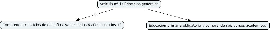 Este Cmap, tiene información relacionada con: articulo 1, Articulo nº 1: Principios generales Educación primaria obligatoria y comprende seis cursos académicos, Articulo nº 1: Principios generales Comprende tres ciclos de dos años, va desde los 6 años hasta los 12