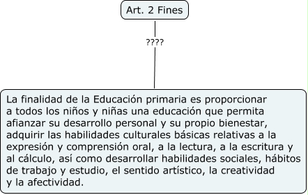 Este Cmap, tiene información relacionada con: 2, Art. 2 Fines ???? La finalidad de la Educación primaria es proporcionar a todos los niños y niñas una educación que permita afianzar su desarrollo personal y su propio bienestar, adquirir las habilidades culturales básicas relativas a la expresión y comprensión oral, a la lectura, a la escritura y al cálculo, así como desarrollar habilidades sociales, hábitos de trabajo y estudio, el sentido artístico, la creatividad y la afectividad.