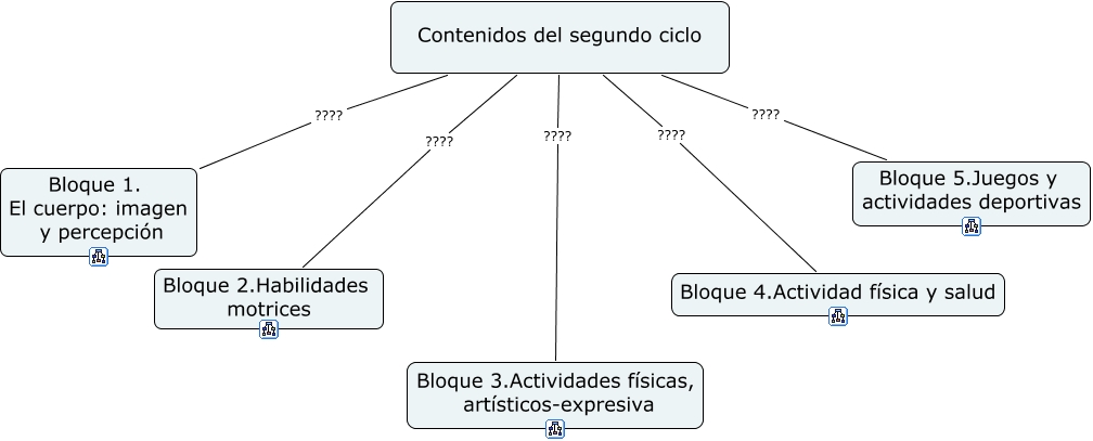 Este Cmap, tiene información relacionada con: segundo ciclo, Contenidos del segundo ciclo ???? Bloque 1. El cuerpo: imagen y percepción, Contenidos del segundo ciclo ???? Bloque 4.Actividad física y salud, Contenidos del segundo ciclo ???? Bloque 3.Actividades físicas, artísticos-expresiva, Contenidos del segundo ciclo ???? Bloque 2.Habilidades motrices, Contenidos del segundo ciclo ???? Bloque 5.Juegos y actividades deportivas