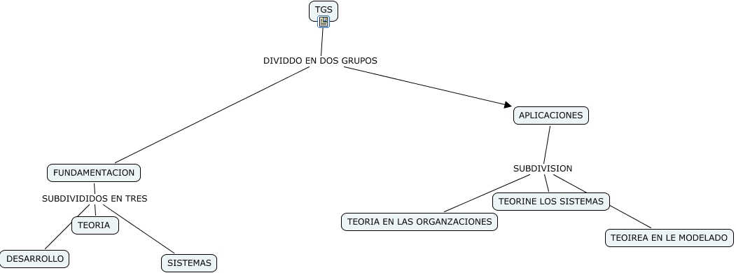 Este Cmap, tiene información relacionada con: TGS, APLICACIONES SUBDIVISION TEOIREA EN LE MODELADO, APLICACIONES SUBDIVISION TEORINE LOS SISTEMAS, TGS DIVIDDO EN DOS GRUPOS FUNDAMENTACION, FUNDAMENTACION SUBDIVIDIDOS EN TRES TEORIA, TGS DIVIDDO EN DOS GRUPOS APLICACIONES, FUNDAMENTACION SUBDIVIDIDOS EN TRES DESARROLLO, FUNDAMENTACION SUBDIVIDIDOS EN TRES SISTEMAS, APLICACIONES SUBDIVISION TEORIA EN LAS ORGANZACIONES
