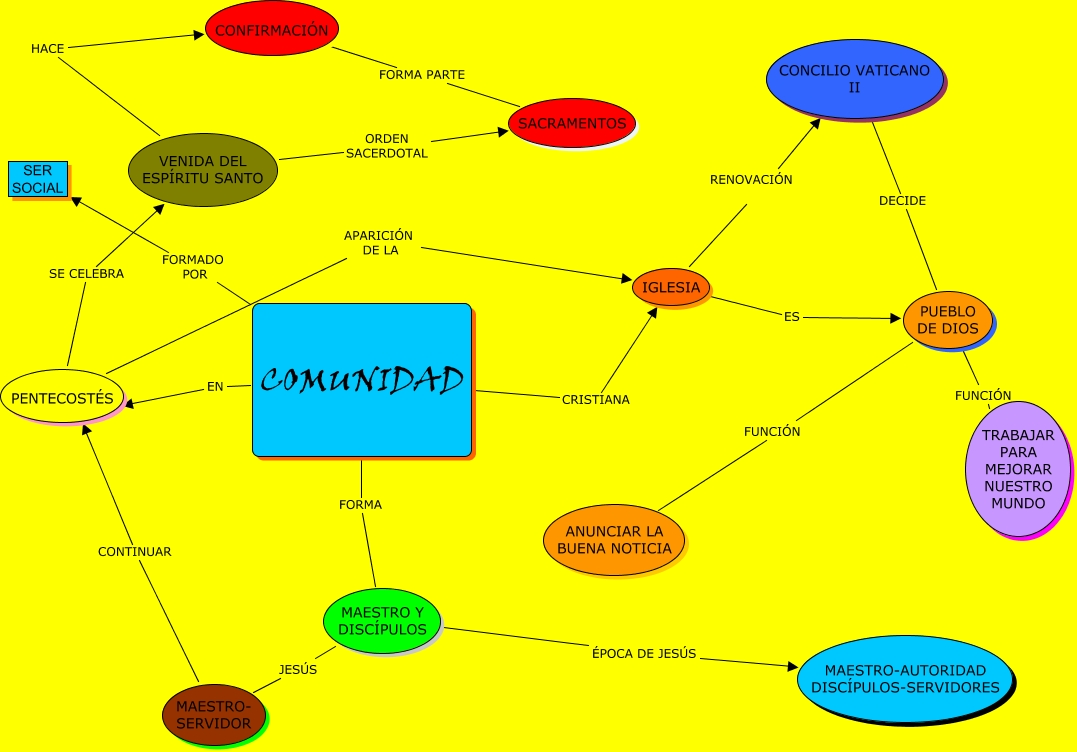 Este Cmap, tiene información relacionada con: Tema5 (Luis y Jorge B.), CONFIRMACIÓN FORMA PARTE SACRAMENTOS, IGLESIA ES PUEBLO DE DIOS, PENTECOSTÉS SE CELEBRA VENIDA DEL ESPÍRITU SANTO, PUEBLO DE DIOS FUNCIÓN ANUNCIAR LA BUENA NOTICIA, MAESTRO Y DISCÍPULOS JESÚS MAESTRO- SERVIDOR, VENIDA DEL ESPÍRITU SANTO HACE CONFIRMACIÓN, COMUNIDAD FORMA MAESTRO Y DISCÍPULOS, PENTECOSTÉS APARICIÓN DE LA IGLESIA, VENIDA DEL ESPÍRITU SANTO ORDEN SACERDOTAL SACRAMENTOS, CONCILIO VATICANO II DECIDE PUEBLO DE DIOS, MAESTRO- SERVIDOR CONTINUAR PENTECOSTÉS, PUEBLO DE DIOS FUNCIÓN TRABAJAR PARA MEJORAR NUESTRO MUNDO, COMUNIDAD FORMADO POR SER SOCIAL, COMUNIDAD CRISTIANA IGLESIA, IGLESIA RENOVACIÓN CONCILIO VATICANO II, COMUNIDAD EN PENTECOSTÉS, MAESTRO Y DISCÍPULOS ÉPOCA DE JESÚS MAESTRO-AUTORIDAD DISCÍPULOS-SERVIDORES