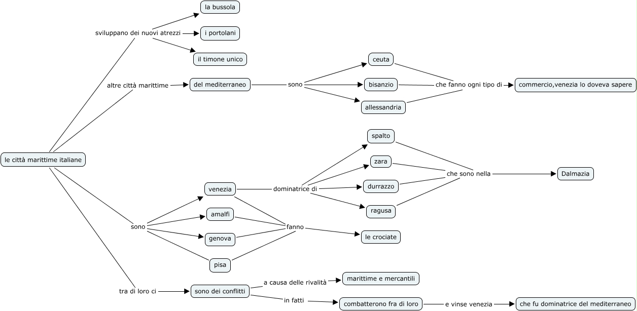 Questa Cmap, creata con IHMC CmapTools, contiene informazioni relative a: le citta maritime italiane, ragusa che sono nella Dalmazia, del mediterraneo sono allessandria, le città marittime italiane sono pisa, le città marittime italiane sono genova, le città marittime italiane altre città marittime del mediterraneo, durrazzo che sono nella Dalmazia, venezia dominatrice di spalto, del mediterraneo sono ceuta, ceuta che fanno ogni tipo di commercio,venezia lo doveva sapere, le città marittime italiane sviluppano dei nuovi atrezzi i portolani, venezia dominatrice di zara, amalfi fanno le crociate, sono dei conflitti a causa delle rivalità marittime e mercantili, le città marittime italiane sviluppano dei nuovi atrezzi il timone unico, combatterono fra di loro e vinse venezia che fu dominatrice del mediterraneo, pisa fanno le crociate, zara che sono nella Dalmazia, le città marittime italiane sono venezia, sono dei conflitti in fatti combatterono fra di loro, spalto che sono nella Dalmazia