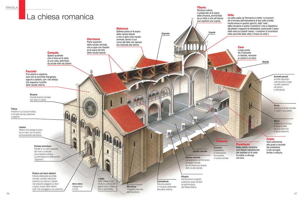 Alzato del Battistero fiorentino.JPG Basilica di Paray-le-Monial, 1090-1110, veduta absidale.jpg Basilica di Sainte-Madeleine a Vézelay inizio del XII secolo-1215 ca, interno.jpg Basilica di Saint-Sernin a Tolosa (Francia), dal 1080, veduta absidale.jpg Basilica di San Marco-disegno ricostruttivo ipotetico.jpg Basilica di San Miniato al Monte.jpg Basilica di San Nicola a Bari.jpg Basilica di Sant'Ambrogio.jpg Campo dei Miracoli-Pisa.jpg Capitello Abbazia di Chiaravalle.jpg Chiesa abbaziale di Sainte-Foy a Conques (Francia).jpg Chiesa abbaziale di Sant'Antimo.jpg Chiesa della Trinità a Saccargia-Sassari.jpg Cupole di San Marco.jpg Duomo di Spira (Germania), 1030-1106, volta a botte.jpg Il cammino per Santiago de Compostela.jpg Interno Duomo di Pisa.jpg La chiesa romanica-assonometria.jpg Magister Lanfranco Mirabilis Artifex.jpg navata di Sant'Ambrogio.jpg Particolare architettonico di San Miniato.jpg Pellegrini medievali.jpg Pellegrini medievali2.jpg Pianta di S.Ambrogio.JPG Pianta di Saint Sernin.jpg Pianta di San Ciriaco.JPG Pianta Duomo Spira.jpg quattro livelli.jpg Rilievo dei Pellegrini Duomo di Fidenza.jpg San Ciriaco.jpg San Ciriaco - esterno.jpg Sant'Ambrogio.jpg Sant'Ambrogio, interno.jpg sezione di una chiesa romanica.jpg sezioni di pilastri.jpg TANTUM ERGO SACRAMENTUM - CANTOS GREGORIANOS E DE CORAIS.mp3 Veduta del Campo dei Miracoli.jpg Veduta interna di San Marco.jpg Volta a botte e a crociera.jpg