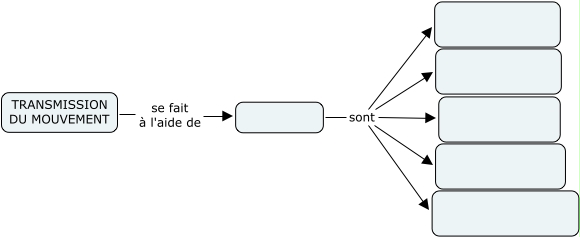 This Concept Map, created with IHMC CmapTools, has information related to: transmission de mouv 1 (vierge), sont, sont, TRANSMISSION DU MOUVEMENT se fait à l'aide de, sont, sont, sont
