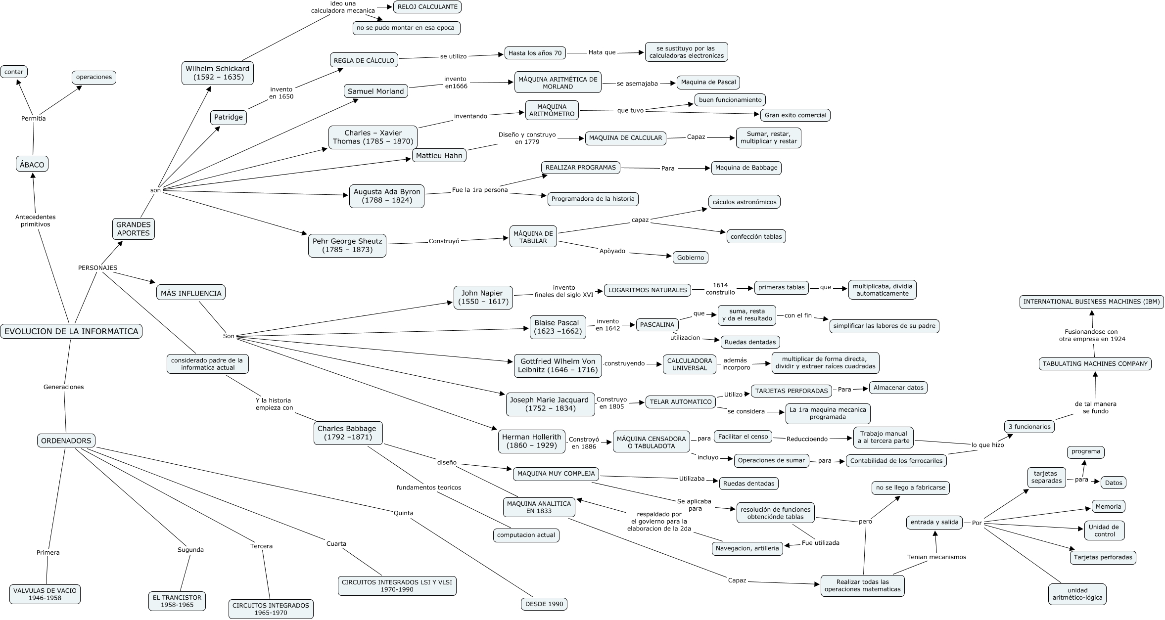 Este Cmap, tiene información relacionada con: mapa, entrada y salida Por Tarjetas perforadas, resolución de funciones obtenciónde tablas pero no se llego a fabricarse, ORDENADORS Sugunda EL TRANCISTOR 1958-1965, Charles Babbage (1792 –1871) diseño MAQUINA MUY COMPLEJA, ORDENADORS Quinta DESDE 1990, Hasta los años 70 Hata que se sustituyo por las calculadoras electronicas, MAQUINA MUY COMPLEJA Se aplicaba para resolución de funciones obtenciónde tablas, Navegacion, artilleria respaldado por el govierno para la elaboracion de la 2da MAQUINA ANALITICA EN 1833, PASCALINA utilizacion Ruedas dentadas, Pehr George Sheutz (1785 – 1873) Construyó MÁQUINA DE TABULAR, Charles – Xavier Thomas (1785 – 1870) inventando MAQUINA ARITMÓMETRO, ORDENADORS Cuarta CIRCUITOS INTEGRADOS LSI Y VLSI 1970-1990, Realizar todas las operaciones matematicas Tenian mecanismos entrada y salida, suma, resta y da el resultado con el fin simplificar las labores de su padre, MÁS INFLUENCIA Son Joseph Marie Jacquard (1752 – 1834), Facilitar el censo Reduccioendo Trabajo manual a al tercera parte, EVOLUCION DE LA INFORMATICA PERSONAJES MÁS INFLUENCIA, REALIZAR PROGRAMAS Para Maquina de Babbage, Realizar todas las operaciones matematicas pero no se llego a fabricarse, ORDENADORS Primera VALVULAS DE VACIO 1946-1958