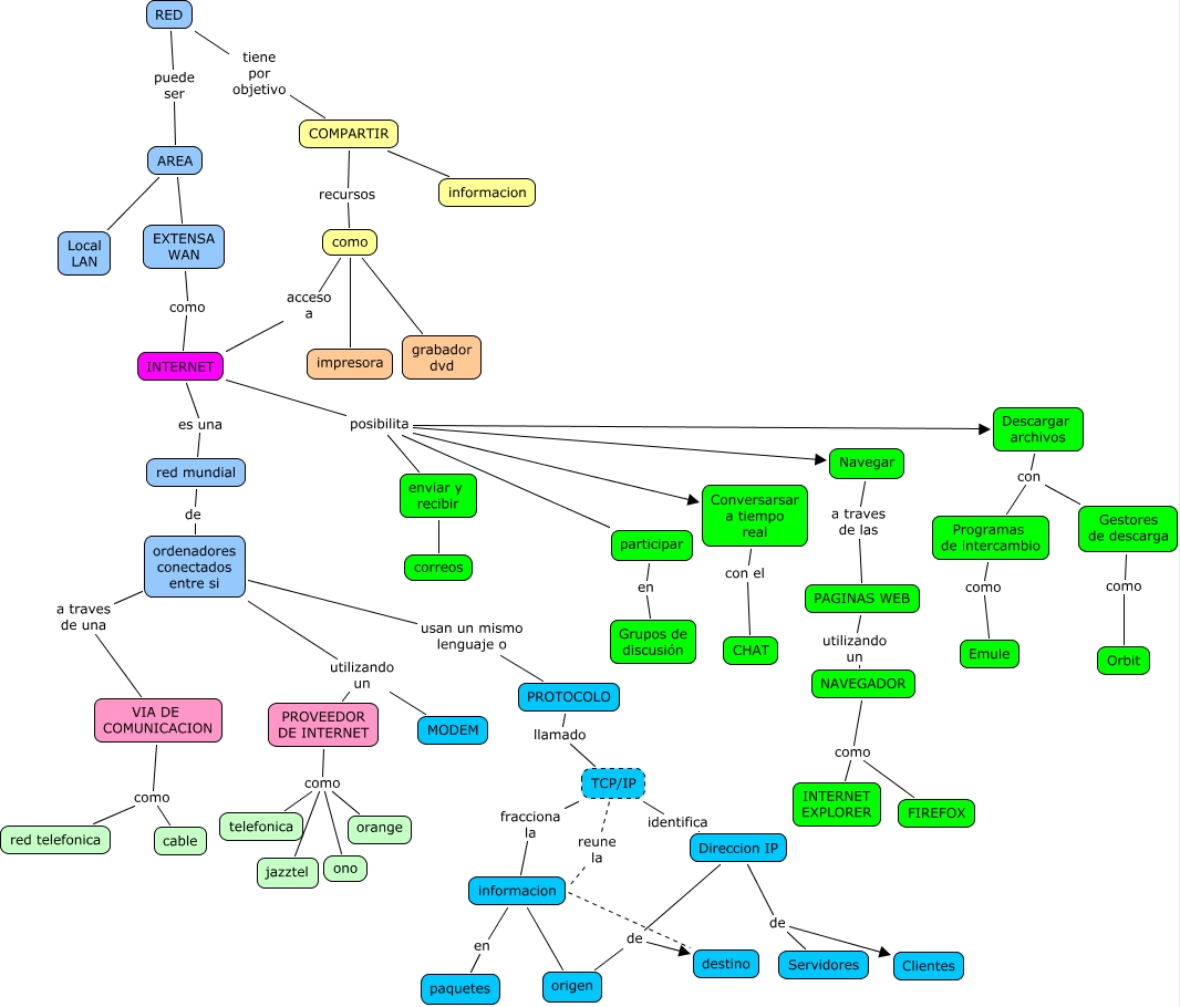 Este Cmap, tiene información relacionada con: internet ANA, como impresora, COMPARTIR informacion, INTERNET es una red mundial, Descargar archivos con Gestores de descarga, PROTOCOLO llamado TCP/IP, Direccion IP de Clientes, PROVEEDOR DE INTERNET como orange, VIA DE COMUNICACION como cable, ordenadores conectados entre si a traves de una VIA DE COMUNICACION, Programas de intercambio como Emule, INTERNET posibilita participar, PROVEEDOR DE INTERNET como jazztel, ordenadores conectados entre si usan un mismo lenguaje o PROTOCOLO, informacion origen, como acceso a INTERNET, Direccion IP de origen, PROVEEDOR DE INTERNET como ono, enviar y recibir correos, TCP/IP fracciona la informacion, NAVEGADOR como FIREFOX
