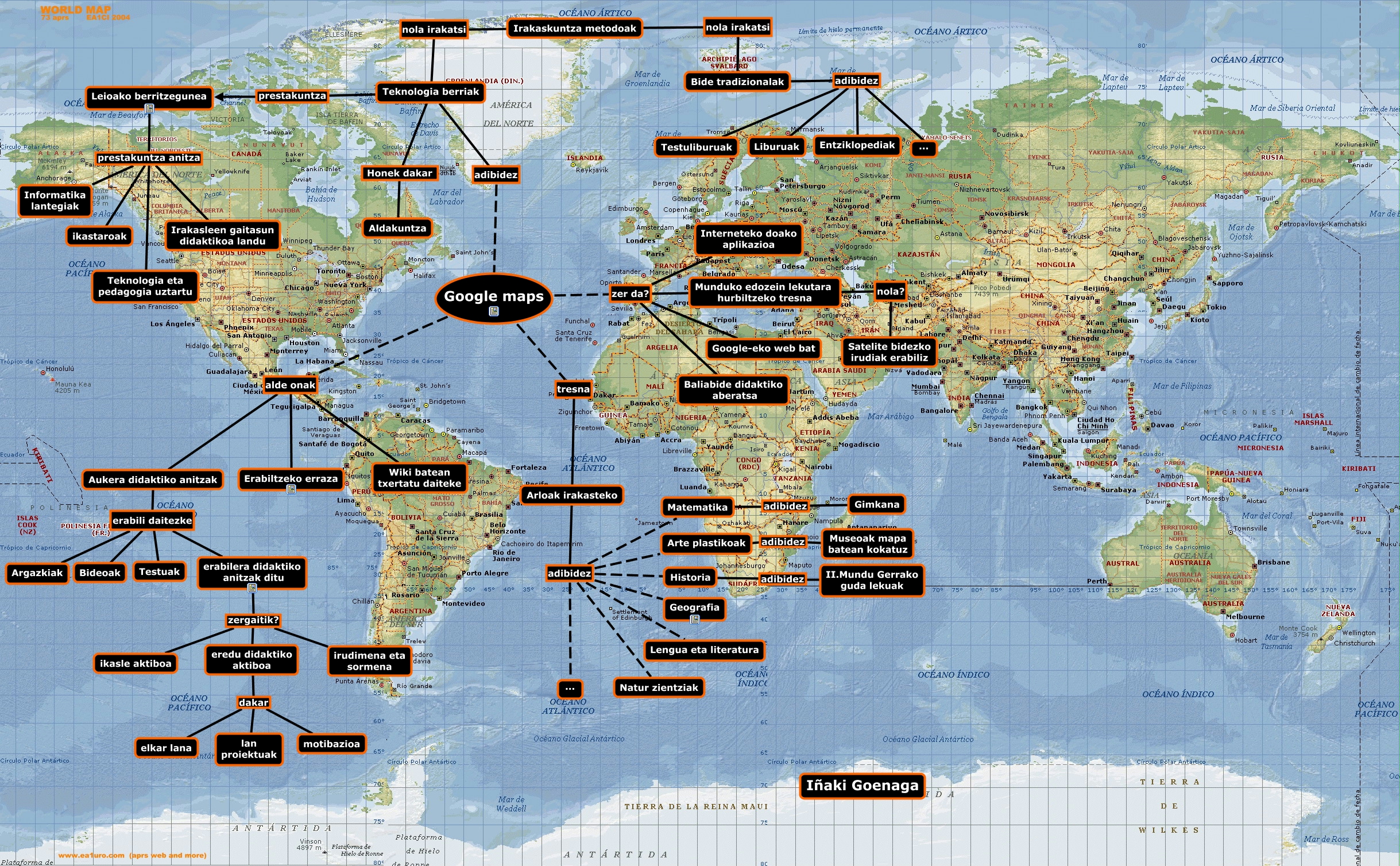 Este Cmap, tiene información relacionada con: Google maps-Iñaki, erabilera didaktiko anitzak ditu zergaitik? eredu didaktiko aktiboa, Teknologia berriak prestakuntza Leioako berritzegunea, Historia adibidez II.Mundu Gerrako guda lekuak, Google maps alde onak Aukera didaktiko anitzak, Google maps alde onak Wiki batean txertatu daiteke, Aukera didaktiko anitzak erabili daitezke Argazkiak, erabilera didaktiko anitzak ditu zergaitik? irudimena eta sormena, Aukera didaktiko anitzak erabili daitezke Bideoak, Google maps zer da? Interneteko doako aplikazioa, Arloak irakasteko adibidez ..., Google maps alde onak Erabiltzeko erraza, Leioako berritzegunea prestakuntza anitza Informatika lantegiak, Munduko edozein lekutara hurbiltzeko tresna nola? Satelite bidezko irudiak erabiliz, erabilera didaktiko anitzak ditu zergaitik? ikasle aktiboa, Google maps zer da? Baliabide didaktiko aberatsa, Teknologia berriak Honek dakar Aldakuntza, eredu didaktiko aktiboa dakar motibazioa, eredu didaktiko aktiboa dakar elkar lana, Leioako berritzegunea prestakuntza anitza Irakasleen gaitasun didaktikoa landu, Arloak irakasteko adibidez Arte plastikoak