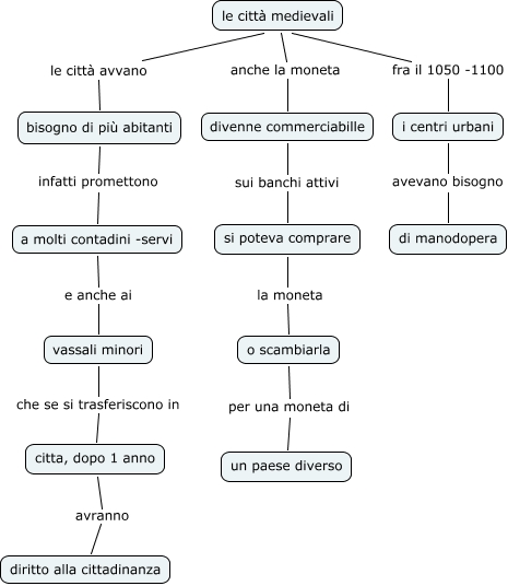 Questa Cmap, creata con IHMC CmapTools, contiene informazioni relative a: la citta medievale, le città medievali le città avvano bisogno di più abitanti, le città medievali anche la moneta divenne commerciabille, le città medievali fra il 1050 -1100 i centri urbani, divenne commerciabille sui banchi attivi si poteva comprare, si poteva comprare la moneta o scambiarla, o scambiarla per una moneta di un paese diverso, bisogno di più abitanti infatti promettono a molti contadini -servi, i centri urbani avevano bisogno di manodopera, vassali minori che se si trasferiscono in citta, dopo 1 anno, citta, dopo 1 anno avranno diritto alla cittadinanza, a molti contadini -servi e anche ai vassali minori