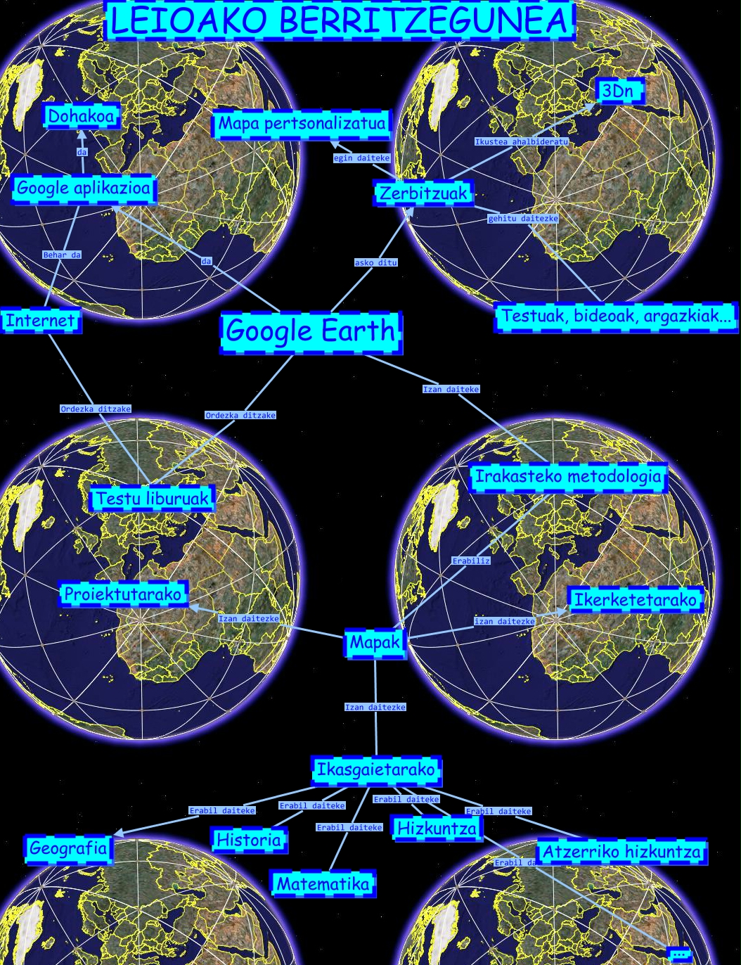 This Concept Map, created with IHMC CmapTools, has information related to: Mapa kontzeptuala, Google aplikazioa da Dohakoa, Zerbitzuak egin daiteke Mapa pertsonalizatua, Internet Ordezka ditzake Testu liburuak, Ikasgaietarako Erabil daiteke Matematika, Google Earth asko ditu Zerbitzuak, Google Earth Ordezka ditzake Testu liburuak, Ikasgaietarako Erabil daiteke ..., Google Earth da Google aplikazioa, Google aplikazioa Behar da Internet, Ikasgaietarako Erabil daiteke Historia, Ikasgaietarako Erabil daiteke Hizkuntza, Zerbitzuak Ikustea ahalbideratu 3Dn, Zerbitzuak gehitu daitezke Testuak, bideoak, argazkiak..., Ikasgaietarako Erabil daiteke Geografia, Mapak Izan daitezke Ikasgaietarako, Ikasgaietarako Erabil daiteke Atzerriko hizkuntza, Mapak Izan daitezke Proiektutarako, Irakasteko metodologia Erabiliz Mapak, Google Earth Izan daiteke Irakasteko metodologia, Mapak izan daitezke Ikerketetarako