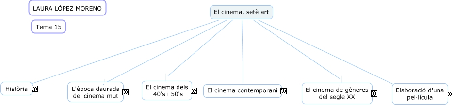 Este Cmap, tiene información relacionada con: Tema 15 - El cinema, L'elaboració d'una pel·lícula etapes Rodatge, El cinema dels 40's i 50's Autors com O. Welles, Cinema musical s'utilitzen decorats cridaners, El cinema dels 40's i 50's Autors com I. Bergman, a la gran pantalla el surrealisme, Producció realització del film, cinema negre reflectien el gangsterisme, El classicisme cinematogràfic es caracteritza per Incorporació del so, Muntatge s'afegeix bandes sonores, Als EUA sorgeix New american cinema group, Història al 1896, a Itàlia autors F.Fellini, El cinema, setè art Història, El cinema de gèneres del S.XX Gèneres cinematogràfics cinema d'animació, Història La reproducció de pel·lícules, Història S'inventa Kinetoscope, El cinema de gèneres del S.XX Gèneres cinematogràfics cinema d'aventures, Cinematògraf al 1895, EUA també triomfaven drames romàntics, URSS va ser nacionalitzat