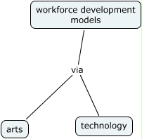 This Concept Map has information related to: workforce development, workforce development models via technology, workforce development models via arts