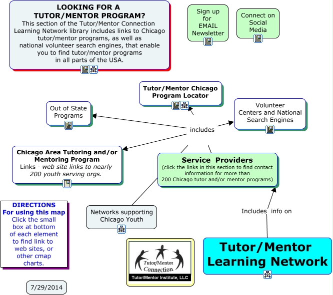 This Concept Map, created with IHMC CmapTools, has information related to: Network Library - Program Links, Service Providers (click the links in this section to find contact information for more than 200 Chicago tutor and/or mentor programs) includes Tutor/Mentor Chicago Program Locator, Service Providers (click the links in this section to find contact information for more than 200 Chicago tutor and/or mentor programs) includes Networks supporting Chicago Youth, Tutor/Mentor Learning Network Includes info on Service Providers (click the links in this section to find contact information for more than 200 Chicago tutor and/or mentor programs), Service Providers (click the links in this section to find contact information for more than 200 Chicago tutor and/or mentor programs) includes Out of State Programs, Service Providers (click the links in this section to find contact information for more than 200 Chicago tutor and/or mentor programs) includes Volunteer Centers and National Search Engines, Service Providers (click the links in this section to find contact information for more than 200 Chicago tutor and/or mentor programs) includes Chicago Area Tutoring and/or Mentoring Program Links - web site links to nearly 200 youth serving orgs.