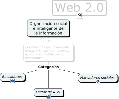 Este Cmap, tiene información relacionada con: Categorias Organizacion social e inteligente de la info, Organización social e inteligente de la información las Herramientas que favorecenla lectura y la escritura en línea, así como su distribución e intercambio, Herramientas que favorecenla lectura y la escritura en línea, así como su distribución e intercambio Categorías Lector de RSS, Herramientas que favorecenla lectura y la escritura en línea, así como su distribución e intercambio Categorías Buscadores, Web 2.0 pilares Organización social e inteligente de la información, Herramientas que favorecenla lectura y la escritura en línea, así como su distribución e intercambio Categorías Marcadores sociales