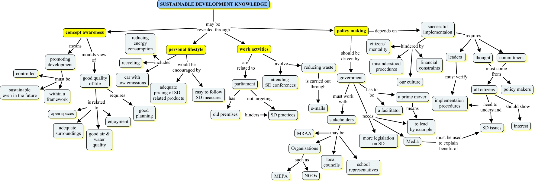 This Concept Map, created with IHMC CmapTools, has information related to: Carl - checked_J, good quality of life is related to good air & water quality, all citizens need to understand implementaion procedures, parliament not targeting SD practices, good quality of life is related to open spaces, a prime mover means to lead by example, SUSTAINABLE DEVELOPMENT KNOWLEDGE may be revealed through work actvities, commitment must come from policy makers, all citizens should show interest, all citizens need to understand SD issues, parliament has old premises, personal lifestyle includes reducing energy consumption, successful implementaion hindered by citizens' mentality, leaders must verify implementaion procedures, successful implementaion hindered by misunderstood procedures, policy making depends on successful implementaion, commitment must come from all citizens, personal lifestyle would be encouraged by easy to follow SD measures, government needs Media, work actvities involve reducing waste, work actvities are related to parliament