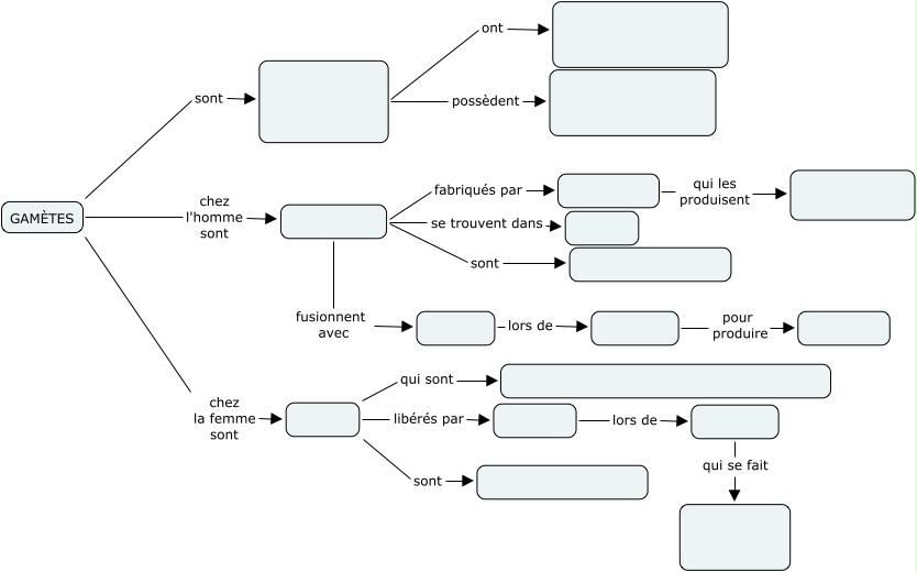 This Concept Map, created with IHMC CmapTools, has information related to: Gamètes (vierge), GAMÈTES chez la femme sont, lors de, ont, qui sont, libérés par, pour produire, GAMÈTES chez l'homme sont, GAMÈTES sont, qui les produisent, possèdent, se trouvent dans, sont, fusionnent avec, lors de, sont, fabriqués par, qui se fait