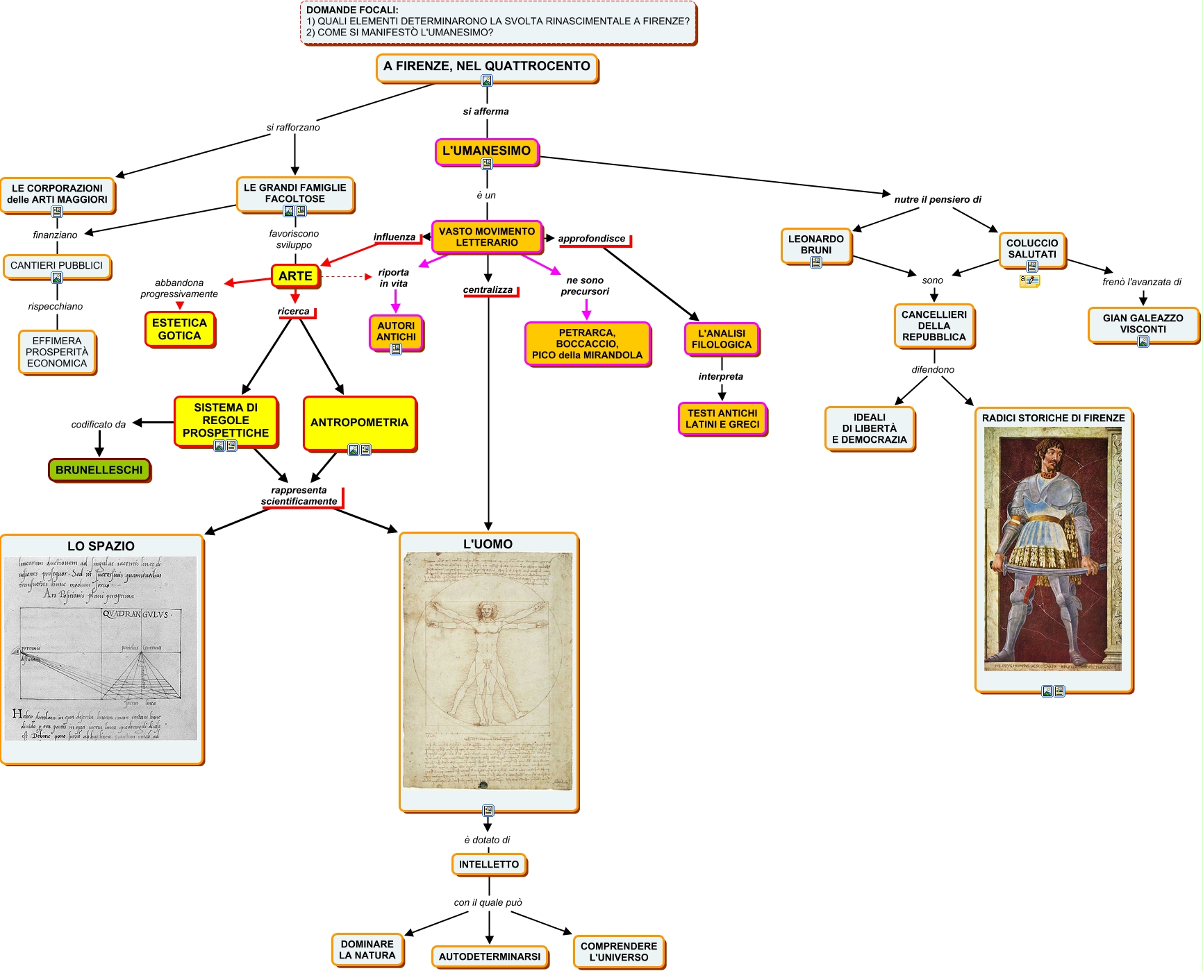 Questa Cmap, creata con IHMC CmapTools, contiene informazioni relative a: La svolta rinascimentale a Firenze, VASTO MOVIMENTO LETTERARIO centralizza L'UOMO, L'UMANESIMO nutre il pensiero di COLUCCIO SALUTATI, A FIRENZE, NEL QUATTROCENTO si afferma L'UMANESIMO, A FIRENZE, NEL QUATTROCENTO si rafforzano LE CORPORAZIONI delle ARTI MAGGIORI, CANTIERI PUBBLICI rispecchiano EFFIMERA PROSPERITÀ ECONOMICA, ARTE ricerca ANTROPOMETRIA, VASTO MOVIMENTO LETTERARIO ne sono precursori PETRARCA, BOCCACCIO, PICO della MIRANDOLA, ARTE abbandona progressivamente ESTETICA GOTICA, ARTE riporta in vita AUTORI ANTICHI, L'UMANESIMO è un VASTO MOVIMENTO LETTERARIO, L'ANALISI FILOLOGICA interpreta TESTI ANTICHI LATINI E GRECI, LE GRANDI FAMIGLIE FACOLTOSE favoriscono sviluppo ARTE, ARTE ricerca SISTEMA DI REGOLE PROSPETTICHE, LE GRANDI FAMIGLIE FACOLTOSE finanziano CANTIERI PUBBLICI, ANTROPOMETRIA rappresenta scientificamente L'UOMO, INTELLETTO con il quale può DOMINARE LA NATURA, INTELLETTO con il quale può AUTODETERMINARSI, LE CORPORAZIONI delle ARTI MAGGIORI finanziano CANTIERI PUBBLICI, VASTO MOVIMENTO LETTERARIO riporta in vita AUTORI ANTICHI, SISTEMA DI REGOLE PROSPETTICHE codificato da BRUNELLESCHI