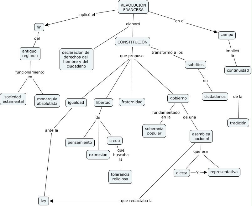 Este Cmap, tiene información relacionada con: revolucion francesa, electa y representativa, libertad de pensamiento, CONSTITUCIÓN que propuso igualdad, asamblea nacional que redactaba la ley, antiguo regimen funcionamiento en monarquía absolutista, credo que buscaba la tolerancia religiosa, fin del antiguo regimen, gobierno fundamentado en la soberanía popular, asamblea nacional que era electa, libertad de credo, CONSTITUCIÓN transformó a los subditos, REVOLUCIÓN FRANCESA elaboró CONSTITUCIÓN, REVOLUCIÓN FRANCESA inplicó el fin, CONSTITUCIÓN que propuso libertad, gobierno de una asamblea nacional, antiguo regimen funcionamiento en sociedad estamental, continuidad de la tradición, REVOLUCIÓN FRANCESA elaboró declaracion de derechos del hombre y del ciudadano, asamblea nacional que era representativa, campo implicó la continuidad
