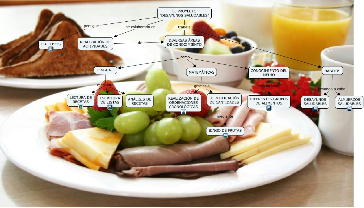 Este Cmap, tiene información relacionada con: PROYECTO DESAYUNO SALUDABLE, CONOCIMIENTO DEL MEDIO reconociendo DIFERENTES GRUPOS DE ALIMENTOS, LENGUAJE mediante ANÁLISIS DE RECETAS, DIVERSAS ÁREAS DE CONOCIMIENTO como MATEMÁTICAS, DIVERSAS ÁREAS DE CONOCIMIENTO como CONOCIMIENTO DEL MEDIO, EL PROYECTO "DESAYUNOS SALUDABLES" trabaja DIVERSAS ÁREAS DE CONOCIMIENTO, EL PROYECTO "DESAYUNOS SALUDABLES" trabaja HÁBITOS, EL PROYECTO "DESAYUNOS SALUDABLES" persigue OBJETIVOS, IDENTIFICACIÓN DE CANTIDADES mediante BINGO DE FRUTAS, EL PROYECTO "DESAYUNOS SALUDABLES" he colaborado en REALIZACIÓN DE ACTIVIDADES, MATEMÁTICAS gracias a REALIZACIÓN DE ORDENACIONES CRONOLÓGICAS, HÁBITOS llevando a cabo DESAYUNOS SALUDABLES, REALIZACIÓN DE ACTIVIDADES de DIVERSAS ÁREAS DE CONOCIMIENTO, MATEMÁTICAS gracias a IDENTIFICACIÓN DE CANTIDADES, DIVERSAS ÁREAS DE CONOCIMIENTO como LENGUAJE, LENGUAJE mediante LECTURA DE RECETAS, HÁBITOS llevando a cabo ALMUERZOS SALUDABLES, LENGUAJE mediante ESCRITURA DE LISTAS