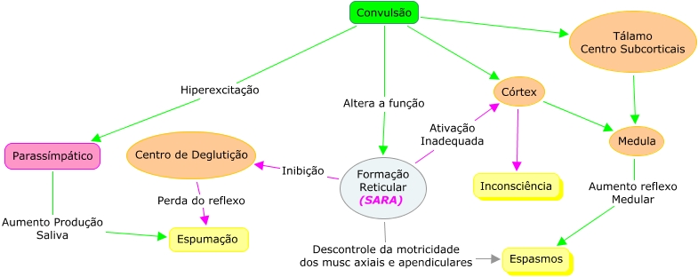 Esse mapa conceitual, produzido no IHMC CmapTools, tem a informação relacionada a: convulsão, Parassímpático Aumento Produção Saliva Espumação, Medula Aumento reflexo Medular Espasmos, Convulsão Tálamo Centro Subcorticais, Formação Reticular (SARA) Descontrole da motricidade dos musc axiais e apendiculares Espasmos, Formação Reticular (SARA) Inibição Centro de Deglutição, Convulsão Altera a função Formação Reticular (SARA), Convulsão Córtex, Convulsão Hiperexcitação Parassímpático, Formação Reticular (SARA) Ativação Inadequada Córtex, Centro de Deglutição Perda do reflexo Espumação, Tálamo Centro Subcorticais Medula, Córtex Medula, Córtex Inconsciência