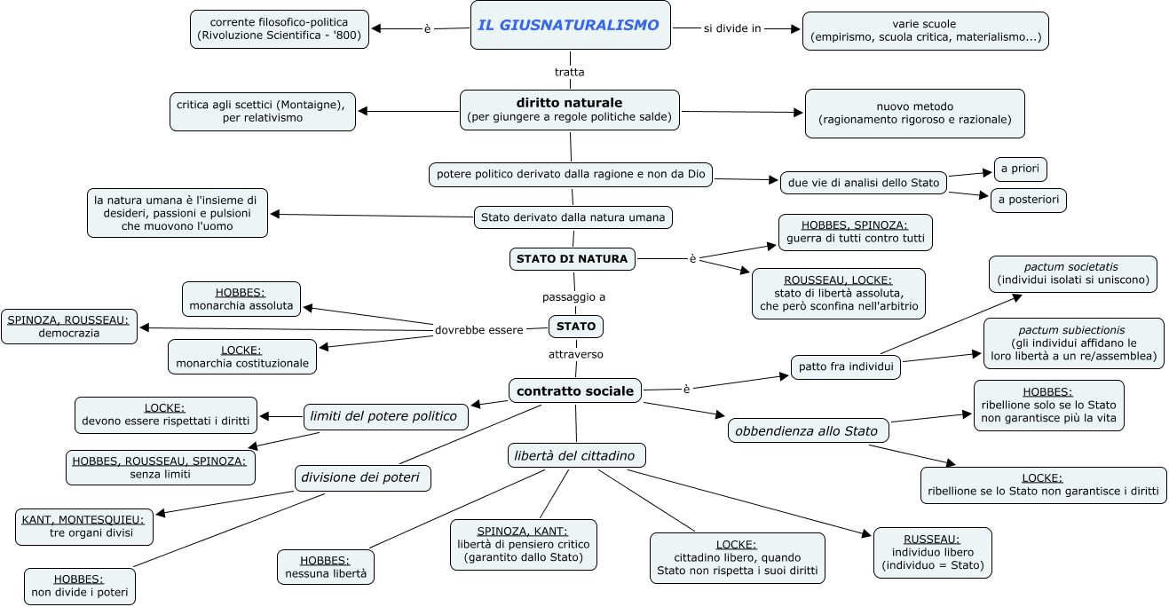 Questa Cmap, creata con IHMC CmapTools, contiene informazioni relative a: Corbetta Fumagalli Loss, patto fra individui pactum subiectionis (gli individui affidano le loro libertà a un re/assemblea), diritto naturale (per giungere a regole politiche salde) potere politico derivato dalla ragione e non da Dio, due vie di analisi dello Stato a priori, libertà del cittadino SPINOZA, KANT: libertà di pensiero critico (garantito dallo Stato), diritto naturale (per giungere a regole politiche salde) nuovo metodo (ragionamento rigoroso e razionale), due vie di analisi dello Stato a posteriori, potere politico derivato dalla ragione e non da Dio due vie di analisi dello Stato, contratto sociale limiti del potere politico, STATO DI NATURA passaggio a STATO, libertà del cittadino RUSSEAU: individuo libero (individuo = Stato), divisione dei poteri HOBBES: non divide i poteri, obbendienza allo Stato LOCKE: ribellione se lo Stato non garantisce i diritti, contratto sociale obbendienza allo Stato, potere politico derivato dalla ragione e non da Dio Stato derivato dalla natura umana, contratto sociale libertà del cittadino, obbendienza allo Stato HOBBES: ribellione solo se lo Stato non garantisce più la vita, STATO dovrebbe essere SPINOZA, ROUSSEAU: democrazia, libertà del cittadino LOCKE: cittadino libero, quando Stato non rispetta i suoi diritti, patto fra individui pactum societatis (individui isolati si uniscono), IL GIUSNATURALISMO tratta diritto naturale (per giungere a regole politiche salde)