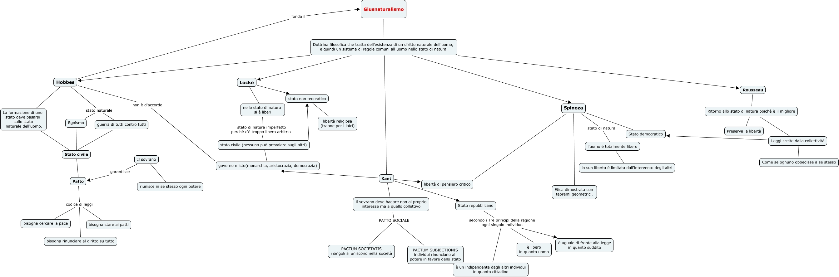 Questa Cmap, creata con IHMC CmapTools, contiene informazioni relative a: DiNapoliMori, stato civile (nessuno può prevalere sugli altri) governo misto(monarchia, aristocrazia, democrazia), Giusnaturalismo Dottrina filosofica che tratta dell'esistenza di un diritto naturale dell'uomo, e quindi un sistema di regole comuni all uomo nello stato di natura., Patto codice di leggi bisogna rinunciare al diritto su tutto, Spinoza Stato democratico, Dottrina filosofica che tratta dell'esistenza di un diritto naturale dell'uomo, e quindi un sistema di regole comuni all uomo nello stato di natura. Hobbes, Stato repubblicano secondo i Tre principi della ragione ogni singolo individuo è libero in quanto uomo, il sovrano deve badare non al proprio interesse ma a quello collettivo PATTO SOCIALE PACTUM SOCIETATIS i singoli si uniscono nella società, Patto codice di leggi bisogna cercare la pace, Stato repubblicano secondo i Tre principi della ragione ogni singolo individuo è un indipendente dagli altri individui in quanto cittadino, Hobbes La formazione di uno stato deve basarsi sullo stato naturale dell'uomo., Spinoza stato di natura l'uomo è totalmente libero, Stato repubblicano secondo i Tre principi della ragione ogni singolo individuo è uguale di fronte alla legge in quanto suddito, stato civile (nessuno può prevalere sugli altri) stato non teocratico, La formazione di uno stato deve basarsi sullo stato naturale dell'uomo. Stato civile, Locke nello stato di natura si è liberi, Kant libertà di pensiero critico, Egoismo Stato civile, Hobbes stato naturale guerra di tutti contro tutti, Il sovrano garantisce Patto, Hobbes fonda il Giusnaturalismo