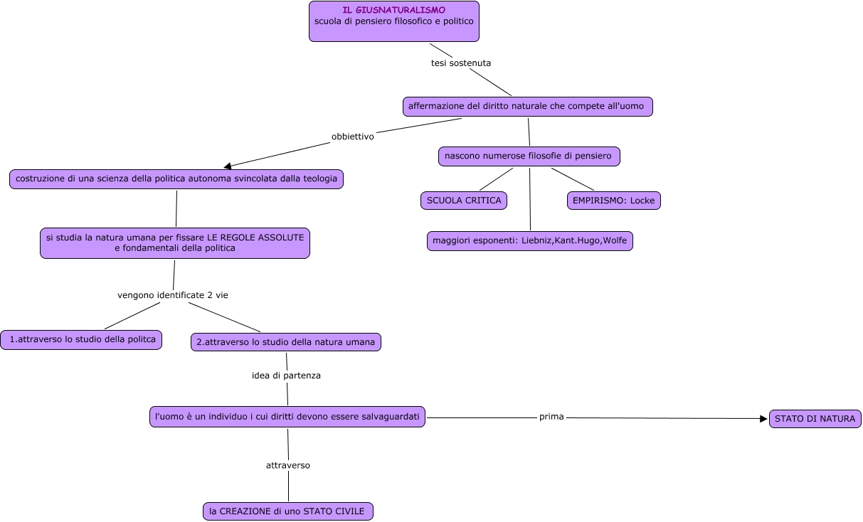 Questa Cmap, creata con IHMC CmapTools, contiene informazioni relative a: mariani-tansella, l'uomo è un individuo i cui diritti devono essere salvaguardati attraverso la CREAZIONE di uno STATO CIVILE, costruzione di una scienza della politica autonoma svincolata dalla teologia si studia la natura umana per fissare LE REGOLE ASSOLUTE e fondamentali della politica, IL GIUSNATURALISMO scuola di pensiero filosofico e politico tesi sostenuta affermazione del diritto naturale che compete all'uomo, l'uomo è un individuo i cui diritti devono essere salvaguardati prima STATO DI NATURA, affermazione del diritto naturale che compete all'uomo obbiettivo costruzione di una scienza della politica autonoma svincolata dalla teologia, 2.attraverso lo studio della natura umana idea di partenza l'uomo è un individuo i cui diritti devono essere salvaguardati, affermazione del diritto naturale che compete all'uomo nascono numerose filosofie di pensiero, nascono numerose filosofie di pensiero SCUOLA CRITICA, nascono numerose filosofie di pensiero maggiori esponenti: Liebniz,Kant.Hugo,Wolfe, nascono numerose filosofie di pensiero EMPIRISMO: Locke, si studia la natura umana per fissare LE REGOLE ASSOLUTE e fondamentali della politica vengono identificate 2 vie 2.attraverso lo studio della natura umana, si studia la natura umana per fissare LE REGOLE ASSOLUTE e fondamentali della politica vengono identificate 2 vie 1.attraverso lo studio della politca
