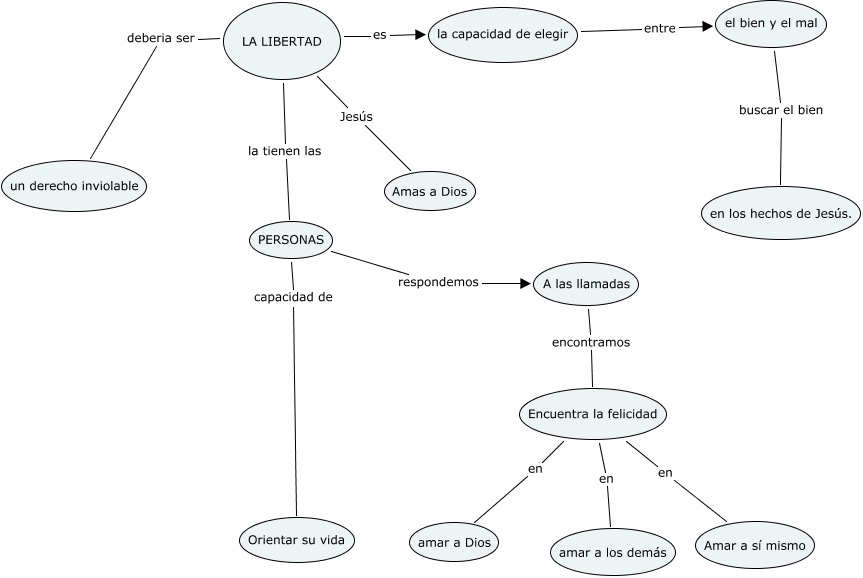 Este Cmap, tiene información relacionada con: libertad (guillermo pedrero y javier), Encuentra la felicidad en amar a los demás, A las llamadas encontramos Encuentra la felicidad, Encuentra la felicidad en Amar a sí mismo, LA LIBERTAD deberia ser un derecho inviolable, LA LIBERTAD Jesús Amas a Dios, la capacidad de elegir entre el bien y el mal, LA LIBERTAD es la capacidad de elegir, PERSONAS capacidad de Orientar su vida, el bien y el mal buscar el bien en los hechos de Jesús., Encuentra la felicidad en amar a Dios, LA LIBERTAD la tienen las PERSONAS, PERSONAS respondemos A las llamadas