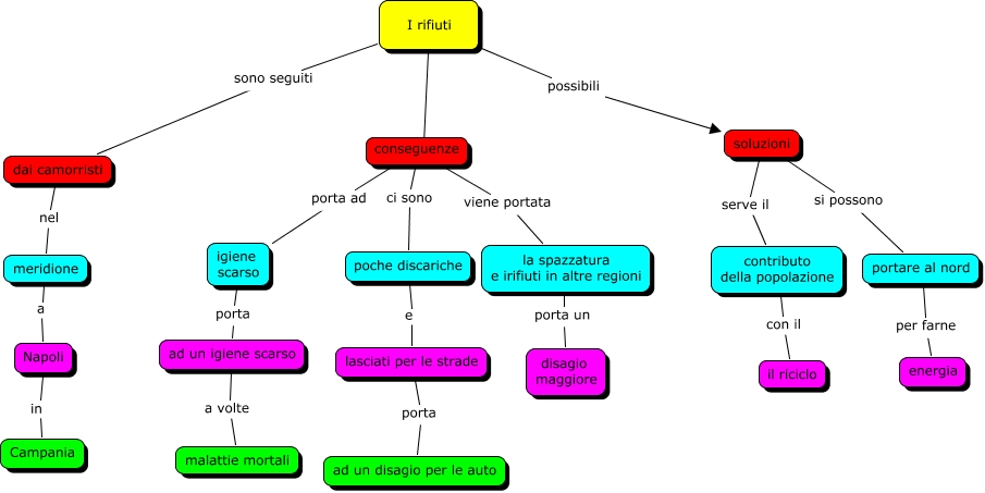 Questa Cmap, creata con IHMC CmapTools, contiene informazioni relative a: Rifiuti, ad un igiene scarso a volte malattie mortali, Napoli in Campania, poche discariche e lasciati per le strade, igiene scarso porta ad un igiene scarso, meridione a Napoli, I rifiuti sono seguiti dai camorristi, I rifiuti ???? conseguenze, portare al nord per farne energia, conseguenze porta ad igiene scarso, conseguenze viene portata la spazzatura e irifiuti in altre regioni, conseguenze ci sono poche discariche, la spazzatura e irifiuti in altre regioni porta un disagio maggiore, soluzioni serve il contributo della popolazione, dai camorristi nel meridione, soluzioni si possono portare al nord, contributo della popolazione con il il riciclo, lasciati per le strade porta ad un disagio per le auto, I rifiuti possibili soluzioni