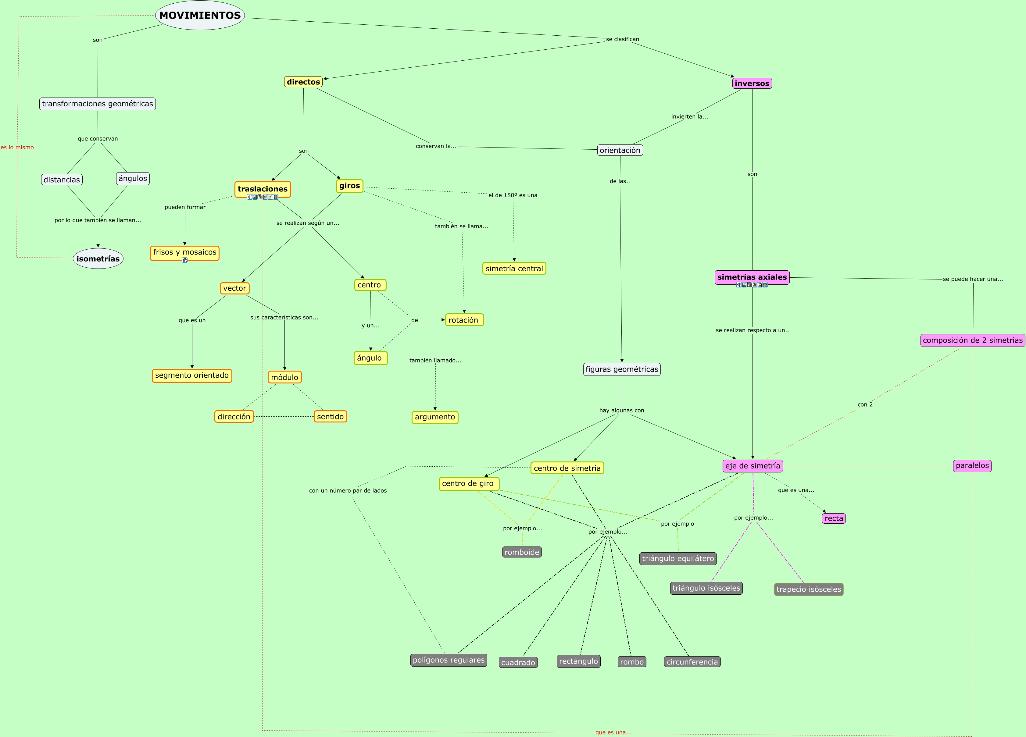 Este Cmap, tiene información relacionada con: Movimientos, módulo dirección, simetrías axiales se realizan respecto a un.. eje de simetría, composición de 2 simetrías con 2 eje de simetría, ángulo de rotación, eje de simetría por ejemplo... trapecio isósceles, giros el de 180º es una simetría central, centro de giro por ejemplo... cuadrado, centro y un... ángulo, eje de simetría por ejemplo triángulo equilátero, eje de simetría paralelos, centro de giro por ejemplo... romboide, figuras geométricas hay algunas con eje de simetría, figuras geométricas hay algunas con centro de simetría, centro de giro por ejemplo... rombo, inversos son simetrías axiales, sentido dirección, orientación de las.. figuras geométricas, centro de giro por ejemplo... rectángulo, MOVIMIENTOS se clasifican inversos, eje de simetría por ejemplo... rombo