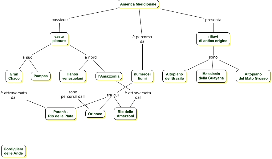 Questa Cmap, creata con IHMC CmapTools, contiene informazioni relative a: 360) America Meridionale - Profilo fisico, numerosi fiumi tra cui Orinoco, rilievi di antica origine sono Altopiano del Brasile, America Meridionale presenta rilievi di antica origine, numerosi fiumi tra cui Rio delle Amazzoni, Gran Chaco è attraversato dal Paranà - Rio de la Plata, vaste pianure a nord llanos venezuelani, rilievi di antica origine sono Altopiano del Mato Grosso, vaste pianure a sud Gran Chaco, llanos venezuelani sono percorsii dall Orinoco, rilievi di antica origine sono Massiccio della Guayana, America Meridionale è percorsa da numerosi fiumi, vaste pianure a nord l'Amazzonia, l'Amazzonia è attraversata dal Rio delle Amazzoni, numerosi fiumi tra cui Paranà - Rio de la Plata, America Meridionale possiede vaste pianure, vaste pianure a sud Pampas
