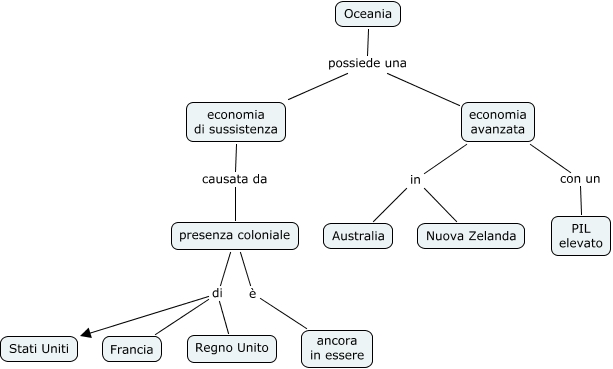 Questa Cmap, creata con IHMC CmapTools, contiene informazioni relative a: 380) Oceania - economia, presenza coloniale di Stati Uniti, presenza coloniale è ancora in essere, Oceania possiede una economia di sussistenza, Oceania possiede una economia avanzata, economia di sussistenza causata da presenza coloniale, economia avanzata con un PIL elevato, presenza coloniale di Regno Unito, presenza coloniale di Francia, economia avanzata in Nuova Zelanda, economia avanzata in Australia