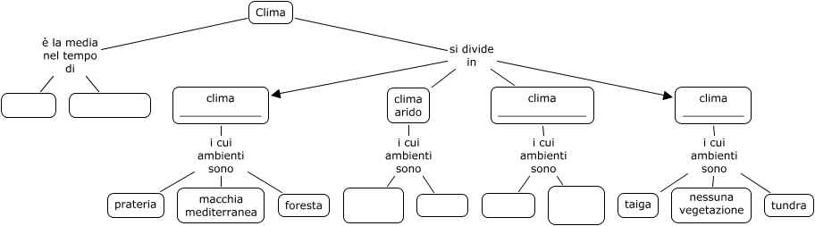 Questa Cmap, creata con IHMC CmapTools, contiene informazioni relative a: 321v Clima e ambienti naturali, Clima si divide in clima ____________, clima ____________ i cui ambienti sono foresta, Clima si divide in clima _________, clima ____________ i cui ambienti sono macchia mediterranea, clima arido i cui ambienti sono deserti, Clima è la media nel tempo di umidità, clima _________ i cui ambienti sono tundra, Clima si divide in clima _____________, Clima si divide in clima arido, Clima è la media nel tempo di temperatura, clima _________ i cui ambienti sono nessuna vegetazione, clima _________ i cui ambienti sono taiga, clima _____________ i cui ambienti sono foresta pluviale, clima arido i cui ambienti sono savana e steppe, clima ____________ i cui ambienti sono prateria, clima _____________ i cui ambienti sono giungla