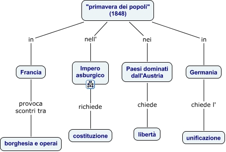 Questa Cmap, creata con IHMC CmapTools, contiene informazioni relative a: 315) Primavera dei Popoli (1848), Francia provoca scontri tra borghesia e operai, "primavera dei popoli" (1848) in Germania, "primavera dei popoli" (1848) nell' Impero asburgico, Impero asburgico richiede costituzione, Germania chiede l' unificazione, "primavera dei popoli" (1848) in Francia, Paesi dominati dall'Austria chiede libertà, "primavera dei popoli" (1848) nei Paesi dominati dall'Austria