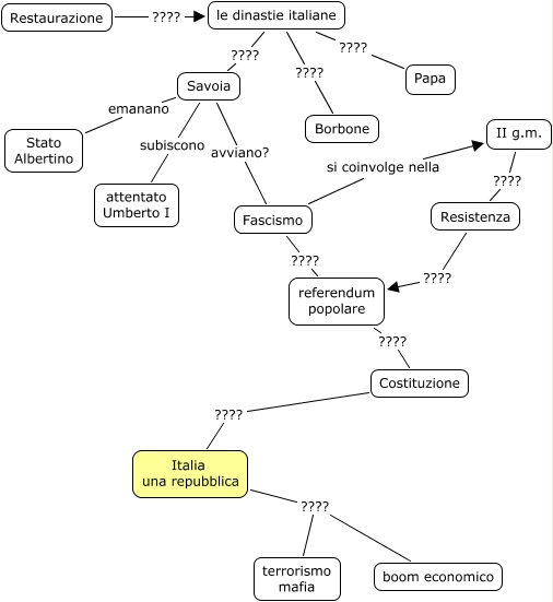 Questa Cmap, creata con IHMC CmapTools, contiene informazioni relative a: 10) Italia una repubblica costituzionale, Fascismo si coinvolge nella II g.m., Resistenza ???? referendum popolare, II g.m. ???? Resistenza, le dinastie italiane ???? Papa, le dinastie italiane ???? Borbone, Costituzione ???? Italia una repubblica, referendum popolare ???? Costituzione, le dinastie italiane ???? Savoia, Italia una repubblica ???? terrorismo mafia, Savoia avviano? Fascismo, Savoia subiscono attentato Umberto I, Italia una repubblica ???? boom economico, Restaurazione ???? le dinastie italiane, Fascismo ???? referendum popolare, Savoia emanano Stato Albertino