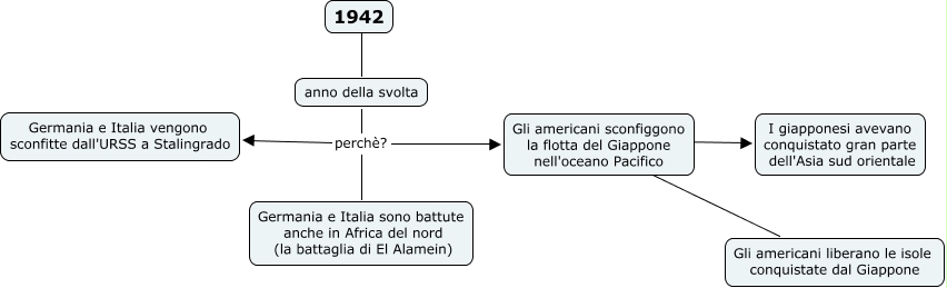 Questa Cmap, creata con IHMC CmapTools, contiene informazioni relative a: 1942, anno della svolta perchè? Germania e Italia vengono sconfitte dall'URSS a Stalingrado, Gli americani sconfiggono la flotta del Giappone nell'oceano Pacifico ???? Gli americani liberano le isole conquistate dal Giappone, anno della svolta perchè? Germania e Italia sono battute anche in Africa del nord (la battaglia di El Alamein), anno della svolta perchè? Gli americani sconfiggono la flotta del Giappone nell'oceano Pacifico, Gli americani sconfiggono la flotta del Giappone nell'oceano Pacifico ???? I giapponesi avevano conquistato gran parte dell'Asia sud orientale, 1942 ???? anno della svolta