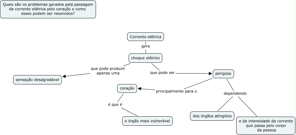 Esse mapa conceitual, produzido no IHMC CmapTools, tem a informação relacionada a: cleidea, choque elétrico que pode ser perigoso, perigoso principalmente para o coração, coração é que é o órgão mais vulnerável, perigoso dependendo e da intensidade da corrente que passa pelo corpo da pessoa, perigoso dependendo dos órgãos atingidos, choque elétrico que pode produzir apenas uma sensação desagradável, Corrente elétrica gera choque elétrico