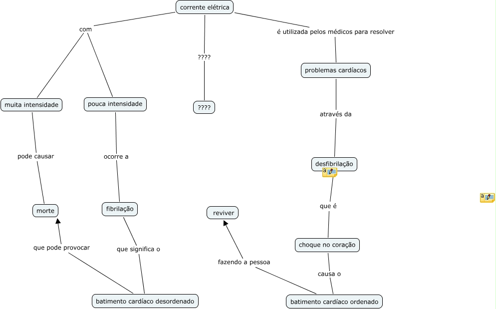 Esse mapa conceitual, produzido no IHMC CmapTools, tem a informação relacionada a: cchoque eletrico fernanda, problemas cardíacos através da desfibrilação, muita intensidade pode causar morte, corrente elétrica com pouca intensidade, corrente elétrica é utilizada pelos médicos para resolver problemas cardíacos, fibrilação que significa o batimento cardíaco desordenado, batimento cardíaco desordenado que pode provocar morte, choque no coração causa o batimento cardíaco ordenado, batimento cardíaco ordenado fazendo a pessoa reviver, corrente elétrica com muita intensidade, pouca intensidade ocorre a fibrilação, corrente elétrica ???? ????, desfibrilação que é choque no coração
