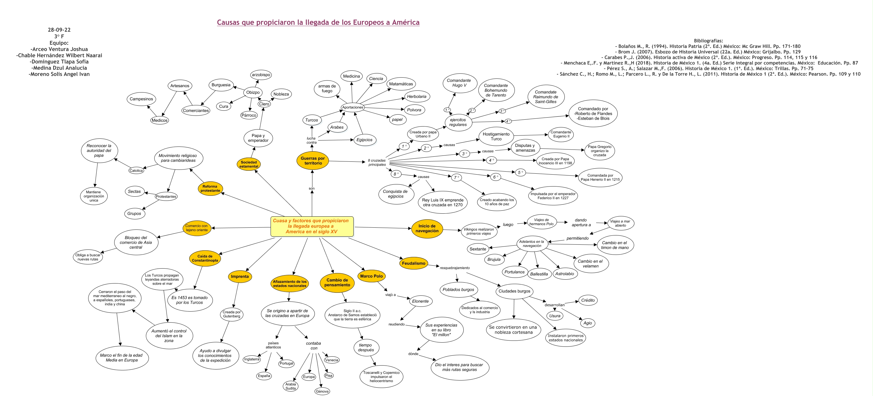 Este Cmap, tiene información relacionada con: Mapa Conceptual, Egipcios Aportaciones ????, ???? España ????, contaba con Arabia Sudita ????, Artesanos Medicos Campesinos, Guerras por territorio lucha contra Turcos, Cuasa y factores que propiciaron la llegada europea a America en el siglo XV Caída de Constantinopla Es 1453 es tomado por los Turcos, Aumentó el control del Islam en la zona Cerraron el paso del mar mediterraneo al negro, a españoles, portugueses, india y china Marco el fin de la edad Media en Europa, Cuasa y factores que propiciaron la llegada europea a America en el siglo XV Caída de Constantinopla ????, Ciudades burgos Se convirtieron en una nobleza cortesana ????, Cuasa y factores que propiciaron la llegada europea a America en el siglo XV Afiazamiento de los estados nacionales Se origino a apartir de las cruzadas en Europa, Feudalismo resquebrajamiento Poblados burgos, 4° Creada por Papa Inocencio III en 1198 ????, Arabes ???? Herbolaria, Egipcios Aportaciones armas de fuego, 7° Creado acabando los 10 años de paz ????, Cuasa y factores que propiciaron la llegada europea a America en el siglo XV ???? Feudalismo, Sus experiencias en su libro "El millon" dónde Dio el interes para buscar más rutas seguras, Guerras por territorio lucha contra Arabes, Obizpo Párroco ????, Cuasa y factores que propiciaron la llegada europea a America en el siglo XV ???? Marco Polo
